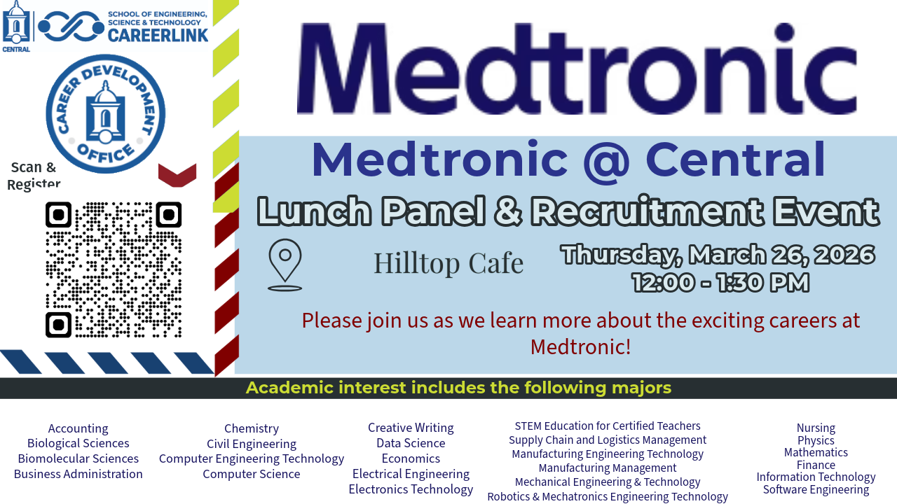 Please Join us as we learn about potential internship, co-op, and full-time opportunities at Medtronic.